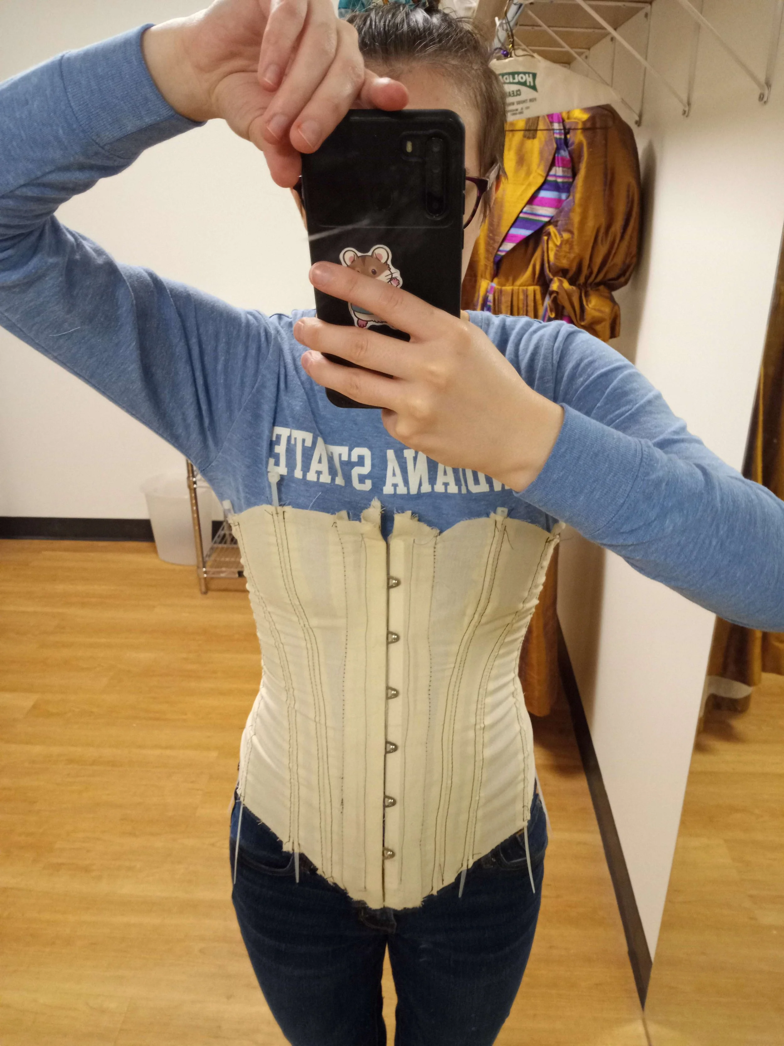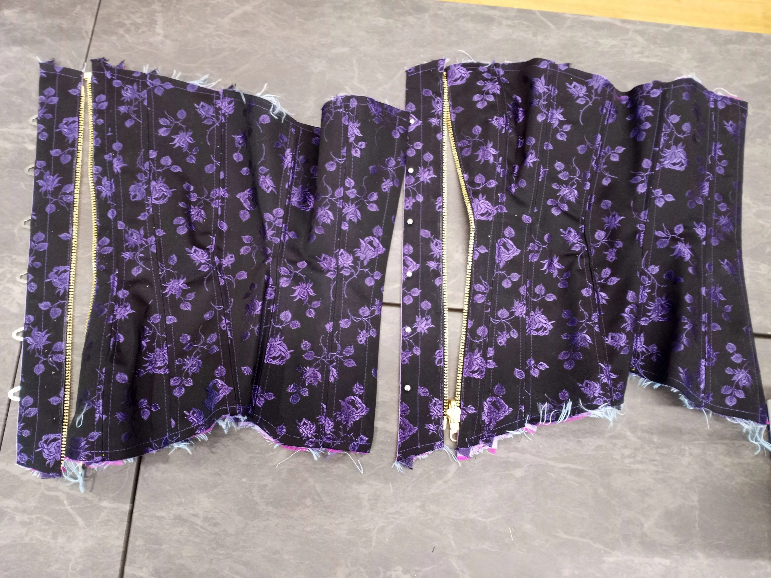 Purple bias tape was installed as a binding along each raw edge of the corset.